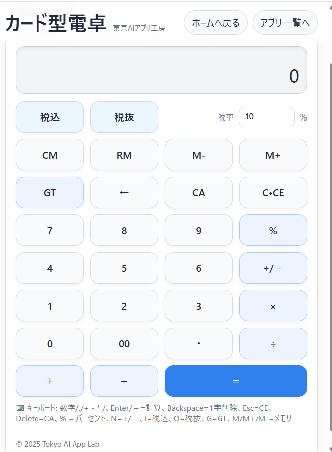“最小で使える”実用電卓を目指しました。ページはブラウザ内だけで動作