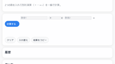 ミニ電卓 chatGPT試作1号 ChatGPTに依頼して生成した最初の試作コードで作ったフォーム型Web電卓。数値×2と演算子選択で四則演算、履歴・入れ替え・コピーに対応。1ファイルHTML・スマホ対応。 2025.09.12